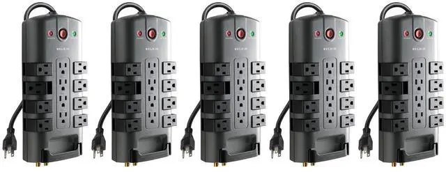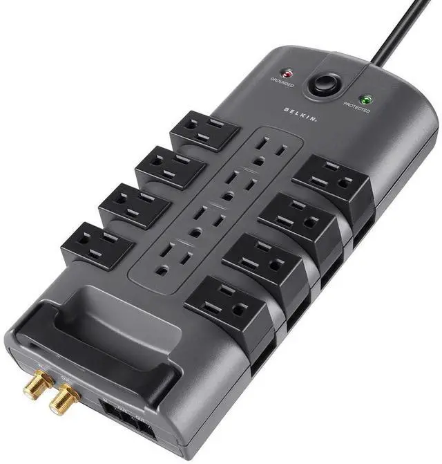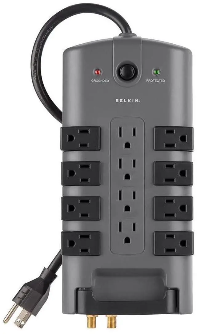 This Belkin Surge Protector Power Strip with 8 Rotating & 4 Standard Outlets is a must-have for anyone looking to efficiently power and protect their electronic devices at home in the office or while traveling. Whether you need to charge your computer laptop phone camera or any other gadgets this compact surge protector with a sturdy extension cord has got you covered.