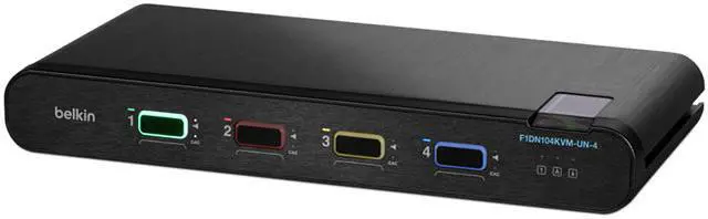 | Features | Designed for NIAP Protection Profile PSD 4.0 Compliance. Combo connector video support for up to 4K (3840x2160), @60hz refresh. Compatible with the Belkin Secure KVM Remote Control with Integrated Keyboard (Optional). Customizable port coloring and naming on the front panel: Facilitates port identification and reduces user switching errors. Color coding mimicked by Belkin KVM Remote Control with Integrated Keyboard. Extrusion form factor that supports an under-counter mount (Optional). Supports TAA combo and video cables for easy deployment. Supports up to four host computers. Supports one display for the user. CAC and Audio freeze functionality. Dedicated processors with emulators for every port: Isolated port paths for video, audio, and peripherals prevent data leaks between computers. Unidirectional data paths: Optical data diodes prevent peripherals from being used to breach systems. Display security: Protected display interface prevents data leakage via the monitor. Analog audio via 3.5mm jack with ultrasonic audio filtering. Peripheral management: USB device detection prevents unauthorized peripheral usage. Active Anti-tampering and Secure labeling: Holographic tamper-evident product label provides visual indication and prevention of tampering. Fast switching: No keyboard or mouse delays when switching ports, minimal video delay. Secure packaging: Tamper-evident packaging ensures product is not tampered with during transport. |