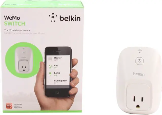 The Belkin Wi-Fi-enabled WeMo Switch lets you turn electronic devices on or off from anywhere. The WeMo Switch uses your existing home Wi-Fi network to provide wireless control of TVs, lamps, stereos, heaters, fans and more. Simply download the free WeMo App from the Google Play Store or the Apple App store, plug the switch into an outlet in your home, and plug any device into the switch. You'll be able to turn that device on or off using your smartphone or tablet (running Android 4.0 and later or iOS 5 or higher). You can set schedules for your devices and control them remotely using a mobile internet connection. You can also add additional switches to your home to control more devices.