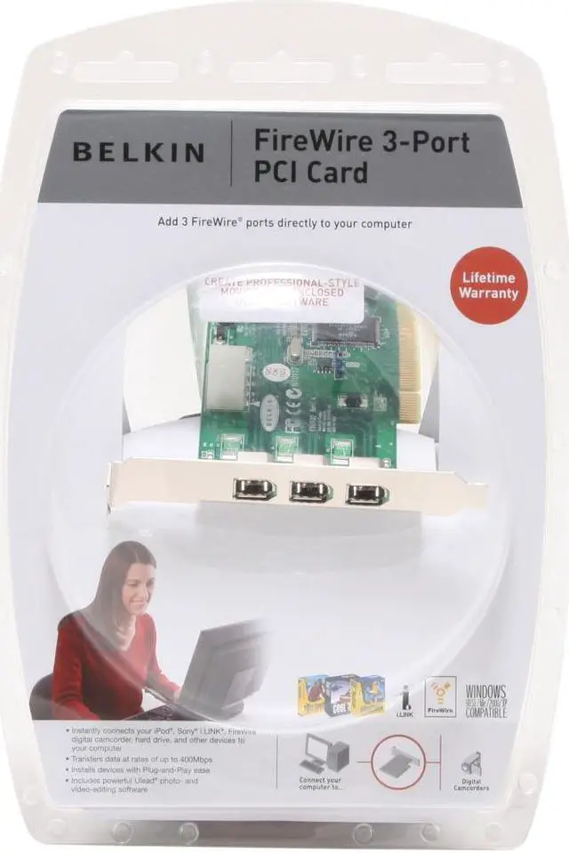 | Features | Fully compliant with PCI 2.1, OCHI 1.0, and current IEEE 1394 specifications; Hot swap FireWire disk drives, scanners, and other peripherals; Transfer large multimedia and data files seamlessly between DV camcorders, music synthesizers, drives and other peripherals and your PC |