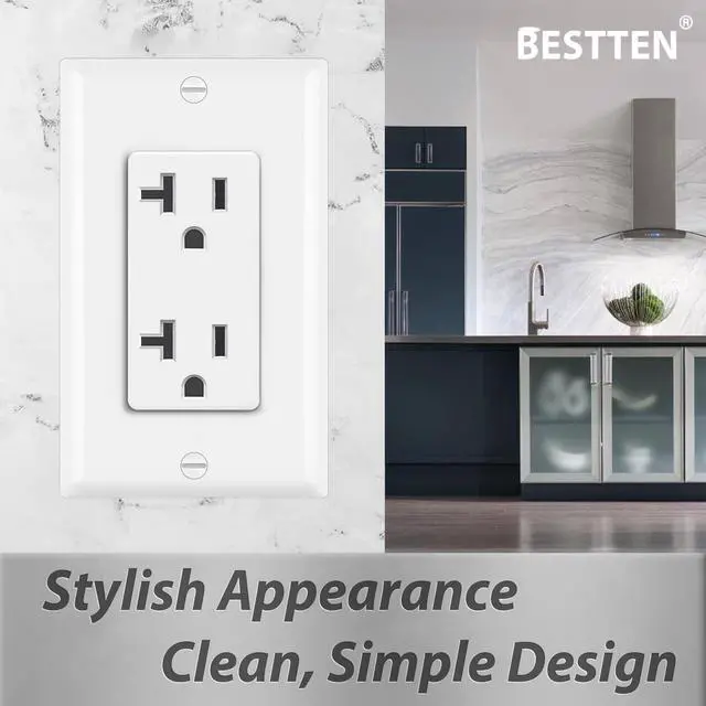 Feature decorator style for a modern, high-end look and offer durable construction, made with high impact-resistant polycarbonate body and solid brass internals. BESTTEN decorator outlets are the perfect upgrade for homes, apartments, condominiums and for commercial use in corporate buildings, hotels, and restaurants.