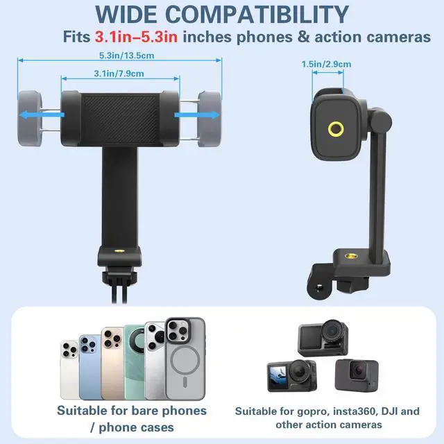 The 180-degree rotation offers full motion for both vertical and horizontal video recording for social media