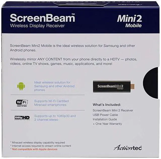 Unlike media players that just give you access to online video and content, ScreenBeam Mini2 Mobile lets you share both local AND online content from your Android phone. You can screen mirror photos, downloaded movies, personal videos, music, photos, games, online TV shows, web browsing, applications, presentations, documents, and more. Share just about anything from your phone?s screen onto a high-definition TV. Not compatible with Apple devices.