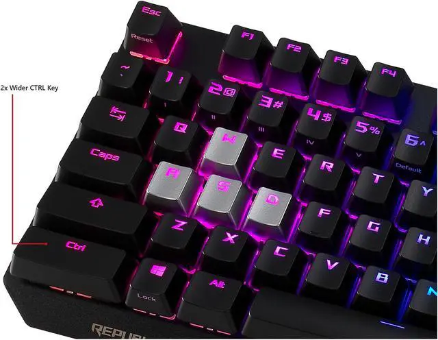 ASUS ROG Strix Scope RGB Mechanical Gaming Keyboard with Cherry MX Silent Red Switches, 2x Wider CTRL Key, extra WASD key caps, Aura Sync RGB Lighting, Quick Toggle Stealth and Media Control Keys
