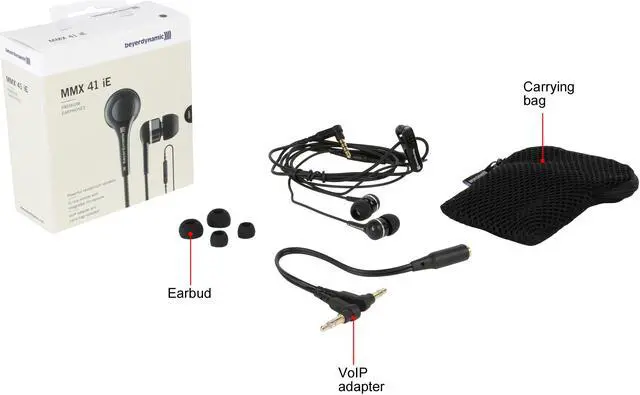Get better sound from your phone, tablet and other portable devices with the Beyerdynamic MMX 41 iE in-ear headphones. The Neodymium HD acoustic drivers produce natural, balanced sound with deep bass and clear highs, and the in-ear design guarantees a comfortable fit and isolates ambient noise. A one-button remote with inline microphone makes it easy to control music and calls. Plus, thanks to the robust build, you can use these headphones with full confidence during commute or workout. A carrying case, three sizes of eartips and a Skype/VoIP adapter round out this impressive offering.