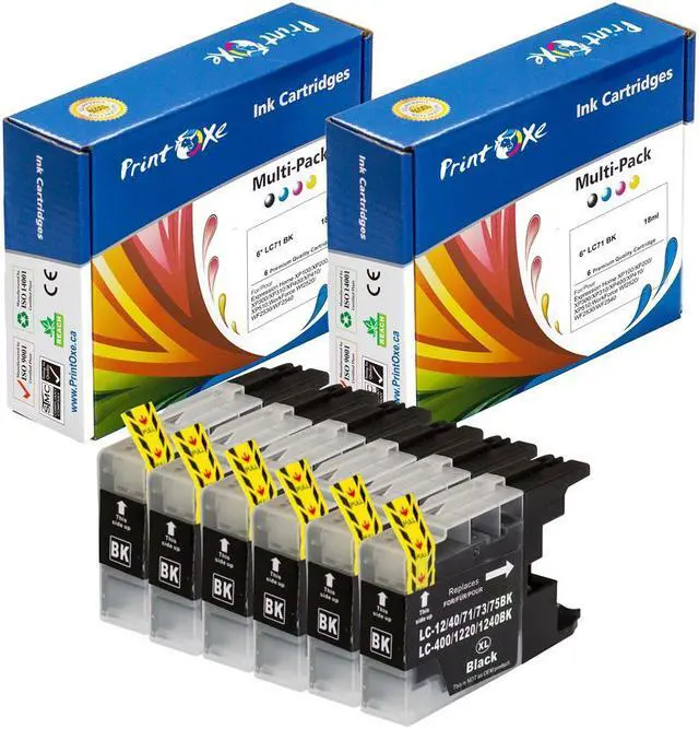 6 Premium Black Cartridges Compatible with Brother LC 71 & LC 75 (LC 1280). 6 Black (18ML Each)