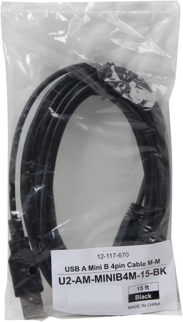 Coboc 15 ft. USB 2.0 A Male to Mini-B 4-pin Male Cable (Black)