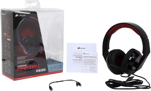 The Corsair Raptor HS30 gaming headset is ergonomically designed for better audio quality and the comfort you need to keep your head in the game. The 40mm neodymium audio drivers are enclosed in padded, circumaural earpads that fit around your ears so they're more comfortable and help block distractions. And, they're closed back, so your gaming won't distract anybody, either. The HS30 also has a padded headband, and a noise canceling microphone that screens out background noise.