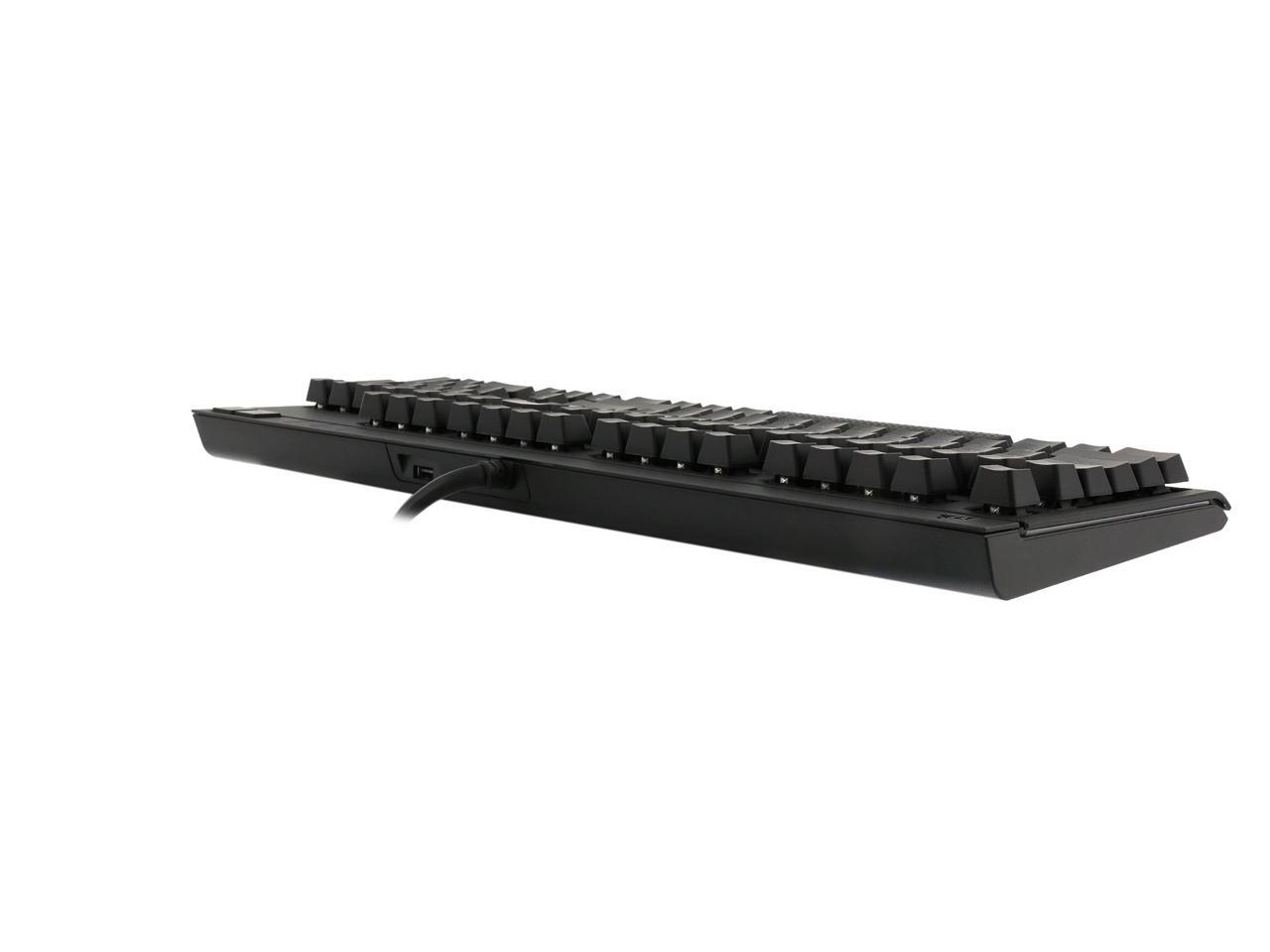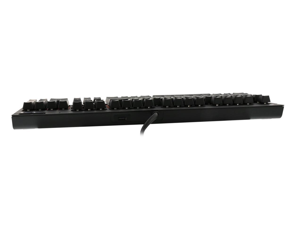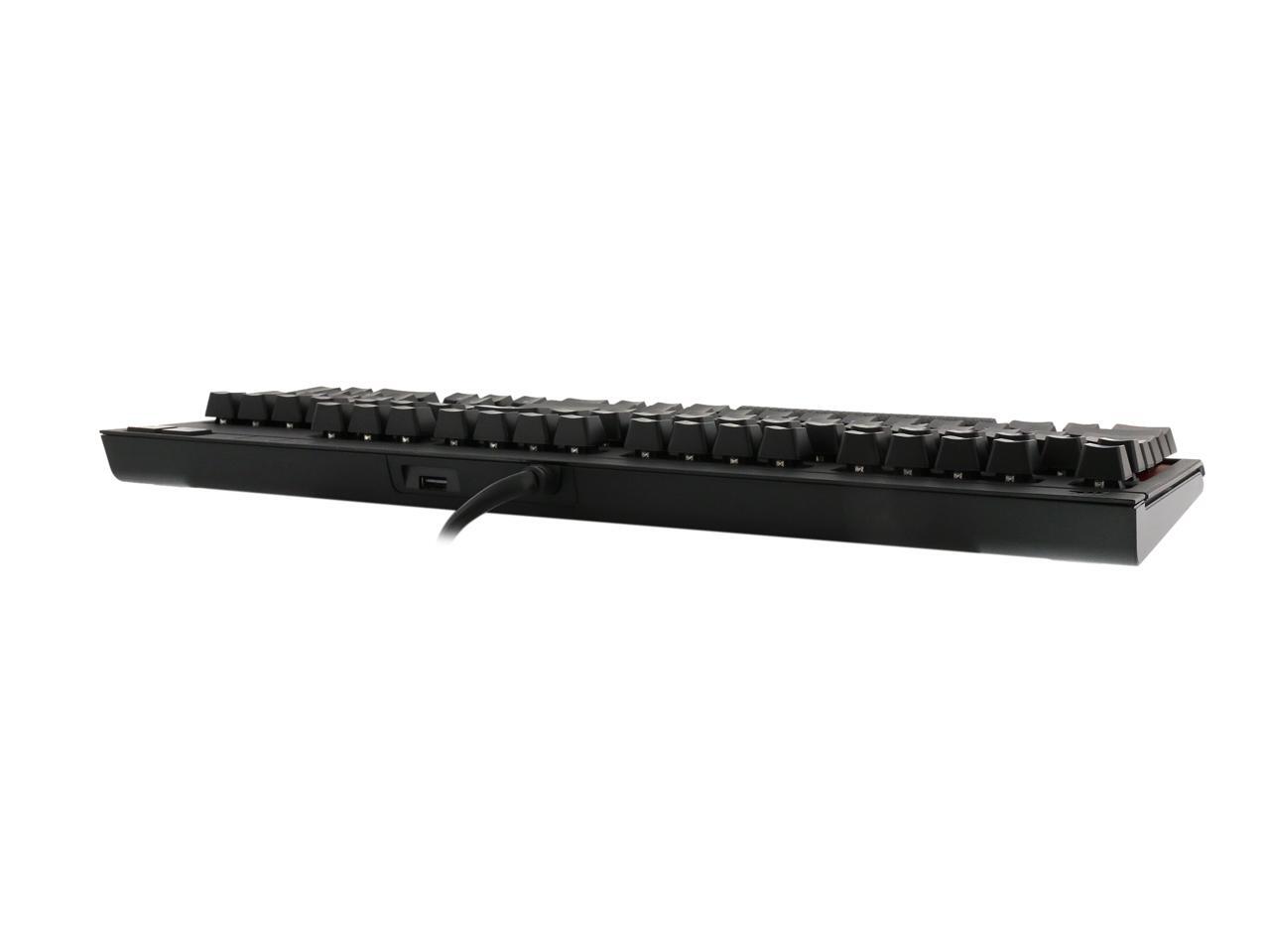 Fully unleash your gaming prowess with the Strafe MX mechanical keyboard from Corsair. It's built with Cherry MX Red key switches that deliver fast and precise response you need to win. A switch life rating of 50 million keypresses ensures consistent, responsive performance over the lifetime. Anti-ghosting and 104-key rollover means every input will be recognized. Brilliant backlight with unlimited lighting programmability offers you ability to create a combat gear that's uniquely yours. Plus, this keyboard comes with an array of multimedia keys, and a USB pass-through port for handy connection with USB gadgets, such as mouse or USB thumb drive. Battle with the Corsair Strafe MX, and embrace the victory one after another.