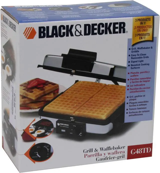 3 sets of cooking plates for maximum versatility: Waffle, Griddle & Grill Griddle lies flat for double the cooking space Non-Stick surface make cleanup a breeze Totally immersible for easy cleanup once probe is removed Cool-touch handles let you take the waffle right to the table Folds Open Flat Removable Plates Cool Touch Handles Cooking Area 9" Cord Wrap Variable Temperature