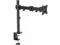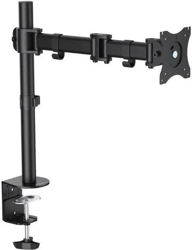 Suggested Screen Size: 13" - 27" Rated Load (Per Arm): 17.6 lbs. VESA Mount Types: 75 x 75 100 x 100 Wall Mountable: No Tilt: +45° ~ -45° Rotate: 360° Swivel/Pivot: +90° ~ -90° Arm Extend: 428 mm Mounting Options: Clamp and or Grommet Color: Black Material: Economy Stee