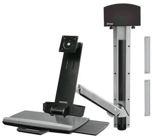 Transform the way you work with this sit-stand combo arm, which can hold a 24-inch monitor weighing up to 29 pounds. This Ergotron StyleView combo arm has an expansive reach of 40 inches horizontally from the wall to enable for up-close viewing and is ideal for use in small work areas.