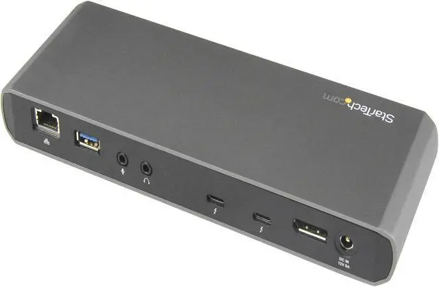 Connects to your laptop's Thunderbolt 3 USB-C port, so you can access multiple displays and peripherals