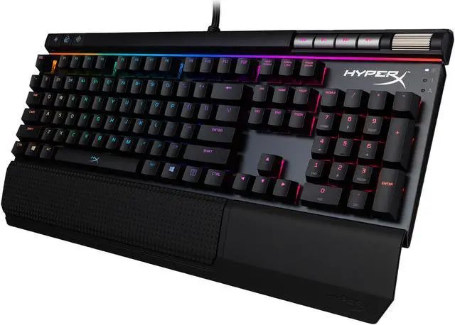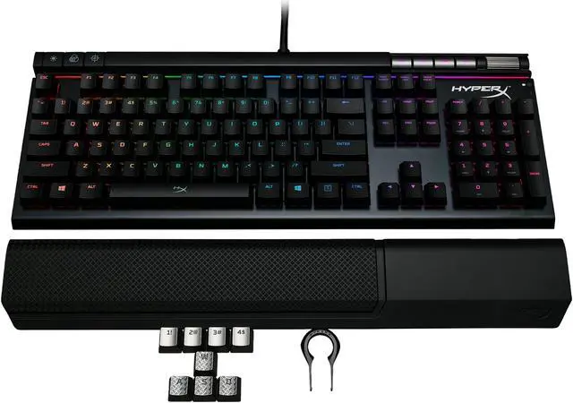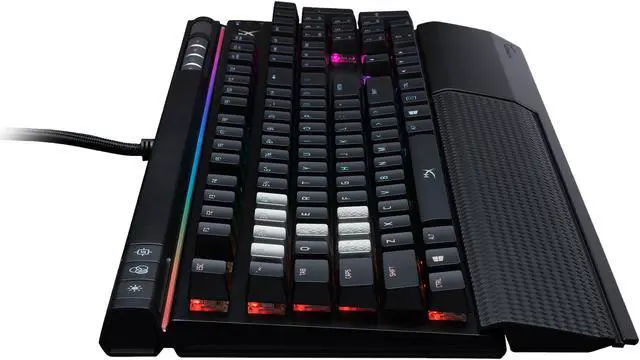 The HyperX™ Alloy Elite RGB is a full-featured, multimedia keyboard ready to drop jaws and rock faces with its dazzling RGB splendor! Customize coloring for each of your keys with the easy to use HyperX NGenuity software and wow the world with your personalized lightshow. The solid steel frame will help provide sturdy, stable controls even when you’re frantically spamming actions, while the Game Mode, N-Key Rollover, and anti-ghosting functions keep your inputs accurate and on point. The feature-rich Alloy Elite RGB comes built to satisfy any user’s needs with dedicated media buttons, USB 2.0 pass-through, quick access buttons, and a variety of reliable CHERRY® MX keyswitches. Once you’ve tweaked your lighting and effects, save your custom set-up directly to the keyboard’s onboard memory. Alloy Elite RGB also features a comfortable, detachable wrist rest, and optional HyperX textured, titanium-colored keycaps designed to help you find the most important keys faster when every millisecond matters.
