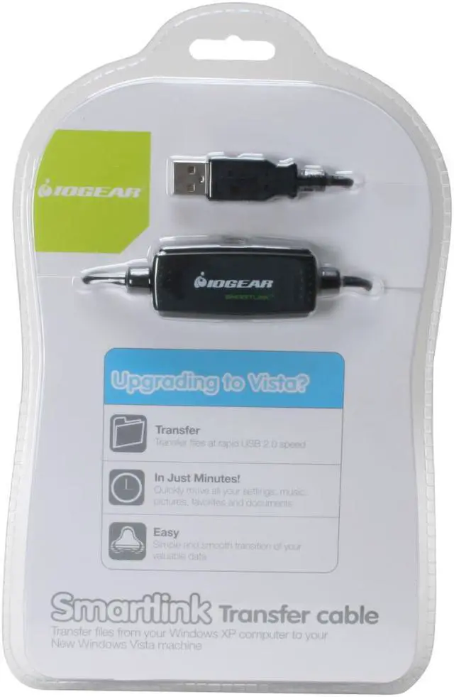 This IOGEAR GUN262WV Smartlink USB Adapter is specially designed to work with Windows Easy Transfer, a new feature on the most recent Windows operation system - 7 and Vista. It is a USB 2.0 host-to-host link adapter allowing you to migrate files and settings from an existing computer running Windows XP or Windows Vista to another new computer running Windows Vista or 7. No additional driver and software are required on Windows Vista and 7. With the adapter in conjunction with Windows Easy Transfer, users can transfer user accounts, files and program settings directly from one PC to another without having to transfer the files to intermediary data storage. For those who need bulk data backup/restore, synchronization or file sharing, it's an ideal transferring solution.