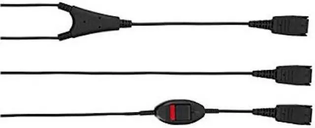 | Features | The Jabra Supervisor Cord connects two Jabra Quick Disconnect headsets to the desk phone, so that supervisor resources can be deployed easily to manage more complex customer conversations or for training purposes. The supervisor's microphone can be turned on or muted using the mute button integrated in the cable's supervisor interface. Primarily for desk phones; also works with softphones via LINK 2X0. For new softphone deployment, Jabra recommends the LINK 265 USB Supervisor Solution. |