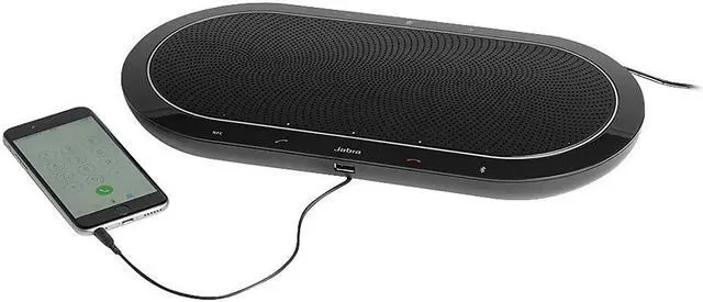 Increase productivity and stay focused wherever you are with Jabra Speak, a range of speakerphones that give you the ability to collaborate and discuss business issues with perfect sound and simple set up. With Jabra, collaboration has never been easier. SLIM AND COMPACT DESIGN Get the perfect solution for audio conferencing on demand with a compact and lightweight design, an integrated USB cable management for quick set-up. PLUG-AND-PLAY SOLUTION Plug your USB cable or connect via Bluetooth®, and simply connect Jabra Speak to your PC, tablet or smartphone. That's it. You are ready to start talking. OUTSTANDING SOUND QUALITY To get crystal clear calls with natural conversation with no feedback or echo. Keep your conversations flowing to maximize your meeting time. OPTIMAL USER EXPERIENCE Benefit from full compatibility - including call control, with the leading UC/Softphone solutions and any Bluetooth enabled smartphone or tablet. Product Type: Speakerphone Power Source: Battery Product Type: Speakerphone Manufacturer Part Number: 7810-109 Power Source: Battery Form Factor: Desktop Manufacturer: GN Netcom A/S Microphone: Yes Product Model: 810 MS Product Name: Speak 810 MS Speakerphone Product Line: Speak Brand Name: Jabra Brand Name: Jabra Product Family: Speak USB: Yes Headphone: Yes Network (RJ-45): No Phone Line (RJ-11): No