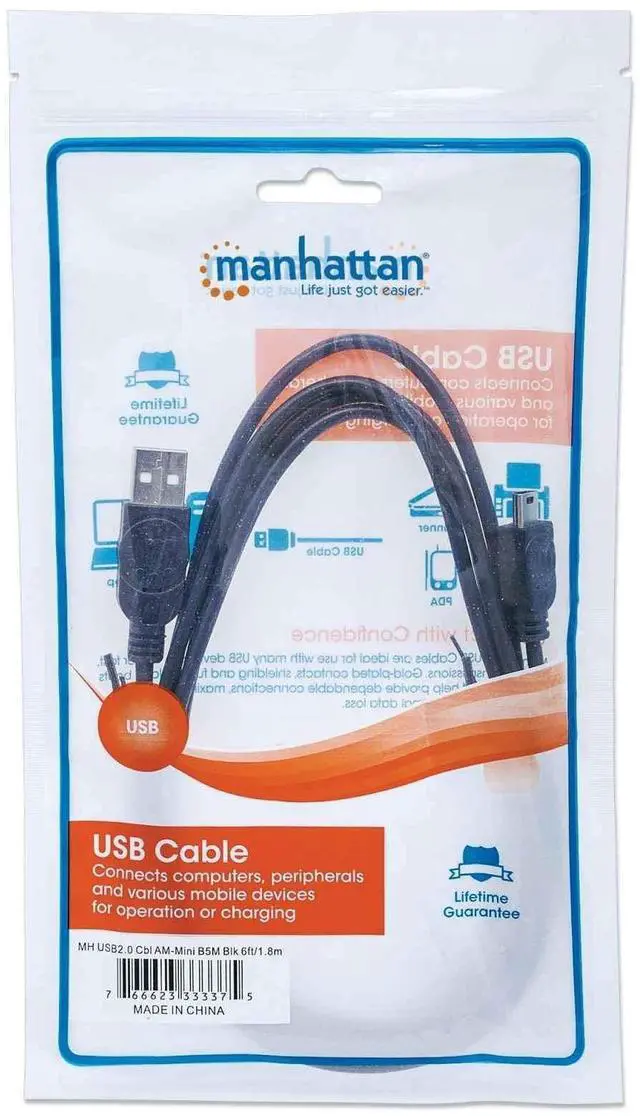 MANHATTAN Hi-Speed USB 2.0 Device Cables easily connect USB peripherals and accessories with desktop and notebook computers. Ideal for use with many USB external enclosures, hubs and other hot-swap, Plug and Play devices, MANHATTAN Hi-Speed USB 2.0 Device Cables support data transfer rates up to 480 Mbps on Windows and Mac systems for fast, reliable transmissions. Gold-plated contacts, shielding and fully molded boots with strain relief help provide dependable connections, maximum conductivity and minimal data loss with reduced EMI interference.