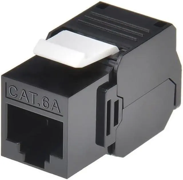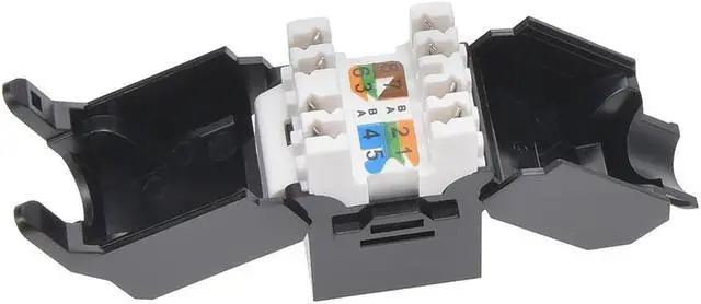 This Toolless keystone jack series allows you to terminate Cat5e, Cat6, and Cat6A jacks without the use of a punch down tool. This keystone jack is backwards compatible with components and systems of lower performing categories. Use in standard keystone wallplates, patch panels, or surface mount boxes. Available in 8 colors and in Cat6 and Cat6A.