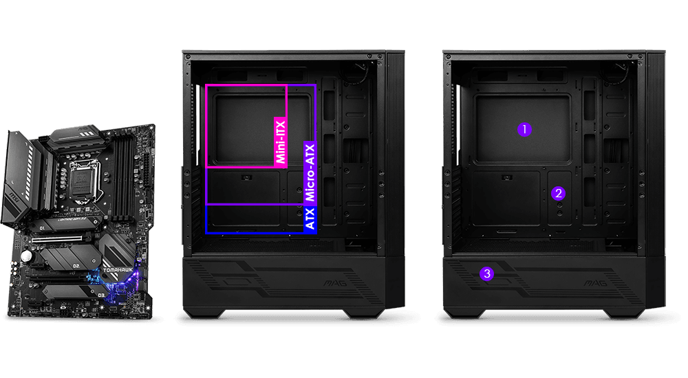 The MAG FORGE 110 Series is optimized to provide generous and effective airflow for system cooling. The MAG FORGE 110 Series can mount up to 6 fans.