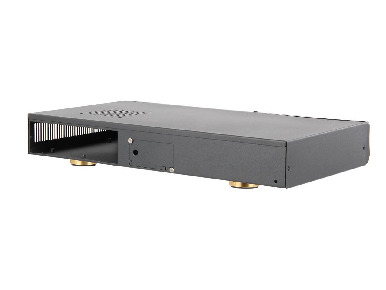 | Features | Support Mini-ITX motherboard Support Mini iTX power supply or the 1080iP DC-ATX PSU Support 2 X 2.5" SSD or Notebook drive Support 80mm (8015) Case Fan x 1 (not included) Front Input Ports: USB 2.0 X 2 and HD Audios Stylish and compact Blu-Ray AV looking Chassis Innovated architecture design makes your installation easy. |