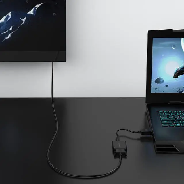 Eliminate clutter by connecting your PC directly to the monitor using this short adapter cable