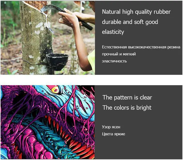 Product Features: (1) Designed by gamers, great to use for gaming/office work. (2) Brand New Fashion Mouse Pad Design (3) Non-slip Black Rubber Backing, Optimized for various mouse sensors and sensitivities. (4) It's perfect for Optical and Trackball Mouse. (5) Printed Pictures are High Definition and Fidelity (6) Made of Rubber (7) Supports full-sized keyboard with more than enough room for mouse.