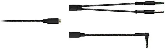 A mobile end with a single three-pole 3.5mm jack and a PC cable with a 3.5mm headphone jack and a 3.5mm microphone jack have both been included.