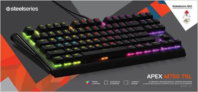 Building gaming's first mechanical keyboard is a key part of SteelSeries history, and the Apex M750 honors that legacy by staying true to our original mantra: built like a tank. The keyboard's frame is built with aerospace aluminum to provide a rock-solid base for the mechanical switches. The use of of series 5000 aluminum alloy, gives the Apex M750 zero-flex stability.