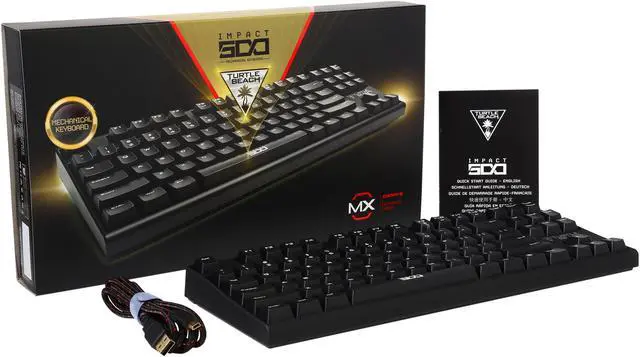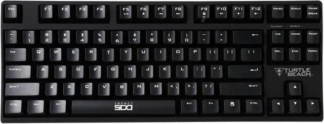 The Turtle Beach IMPACT 500 Mechanical Gaming Keyboard combines precision and power in small package. A rubber-coated, steel-reinforced chassis provides tons of stability in a compact tenkeyless footprint, and Cherry MX Blue key switches deliver gold-standard speed and responsiveness.