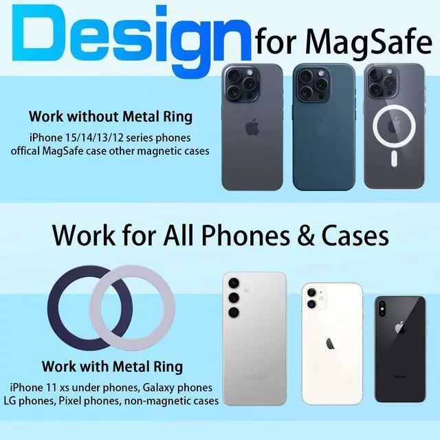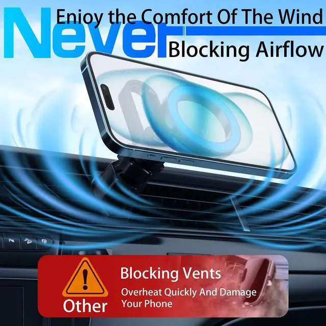 [20 Upgraded Magnets] 2025 Upgraded Magnet Layout - 38.7% Power Boost! This car mount for Mag safe built-in 20 upgraded N52 super magnets, which can easily hold items up to 4.4 lbs. Super powerful magnets ensure a firm hold on your cell phones. Never afraid of falling off even braking strongly, taking sharp turns or driving on rough roads. A practical Mag Safe accessory, car accessories for women and men