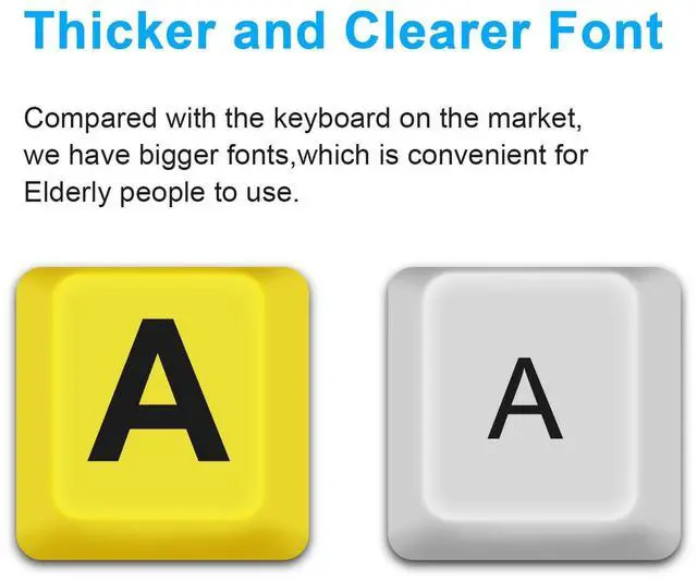 Using our large print keyboard greatly reduces the difficulty involved, allowing you to type smoothly even as a beginner!
