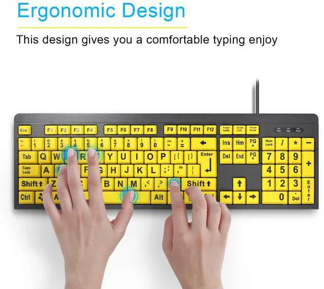 Many people take for granted just how important vision is when it comes to using a keyboard. Our keyboard Designed with high contrast keys makes finding keys a breeze!