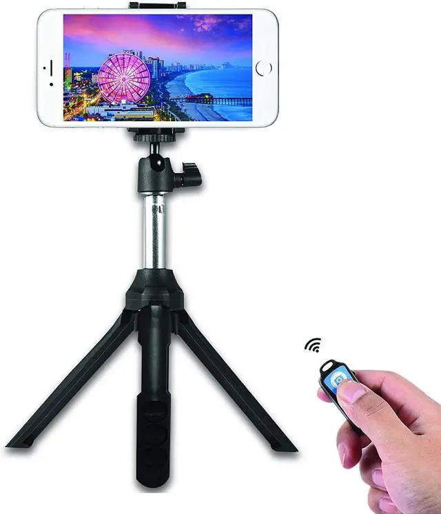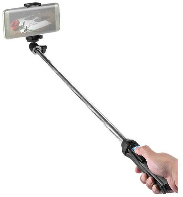 Designed for video blogging and taking selfies, the 6-in-1 professional multipod from Bower is a 6-in-1 tripod/Selfie Stick Accessory that can be mounted on your desktop or used with iOS, Android, go Pro, and other devices, such as ones with a 0.25" Tripod mount. It features a 360° ball head for shooting at different angles and a 2.4 GHz Bluetooth remote shutter release for user-friendly and remote captures at distances up to 33'. This accessory also extends from 7 to 36" To better capture larger groups, or if you just need a longer reach.