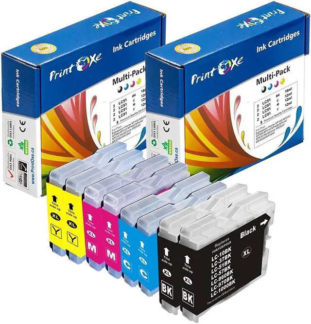 8 Compatible ink cartridges (2 sets) compatible with Brother LC-51. 2 Black, 2 Cyan, 2 Magenta, and 2 Yellow).