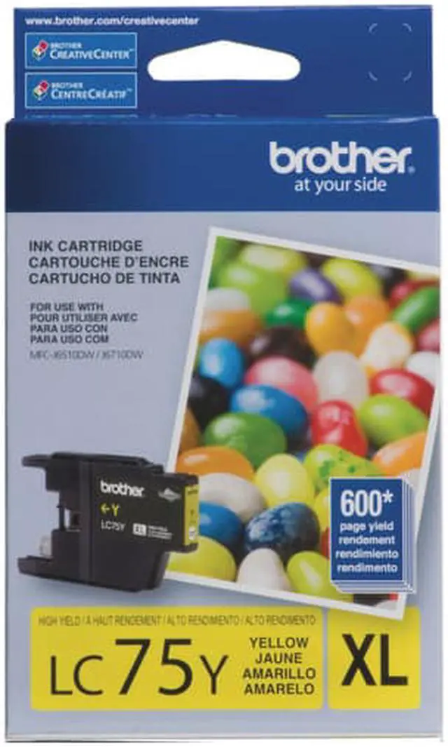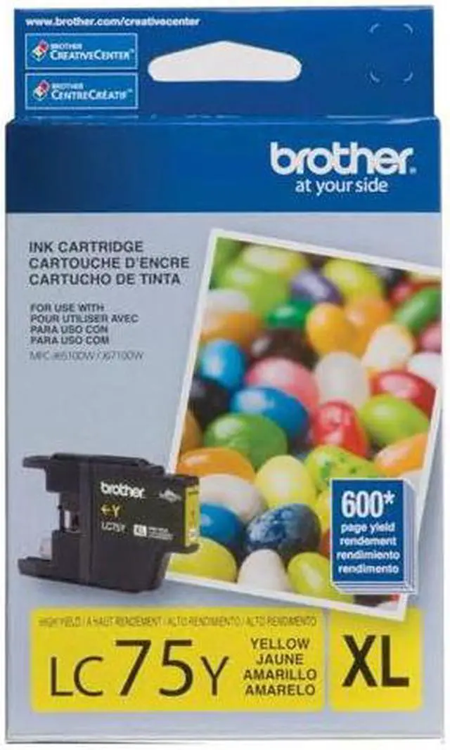 TECHNICAL SPECIFICATIONS: General Information ManufacturerBrother Industries, Ltd Manufacturer Part NumberLC75YS Manufacturer Website Addresshttp://www.brother.ca Brand NameBrother Product ModelLC75YS Product NameLC75YS Ink Cartridge Marketing InformationInk cartridge features Innobella ink technology for print longevity, richer colors and sharper images. Innobella ink is fade-resistant and color-fast to deliver high-quality images that stay vivid for years. Cartridge is designed for use with Brother MFC-J280W, MFC-J425W, MFC-J430W, MFC-J435W, MFC-J5910DW, MFC-J625DW, MFC-J6510DW, MFC-J6710DW, MFC-J6910DW, MFC-J825DW and MFC-J835DW. Cartridge yields approximately 600 pages. Packaged Quantity1 Each Product TypeInk Cartridge Technical Information Print TechnologyInkjet Print ColorYellow Typical Print Yield600 Page Miscellaneous CompatibilityBrother Printers:MFC-J6510DWMFC-J6710DWMFC-J6910DW RecycledNo Assembly RequiredNo