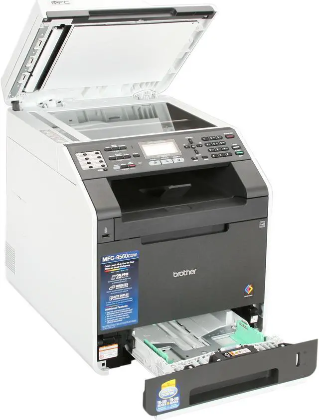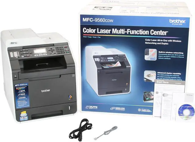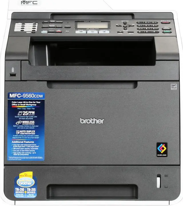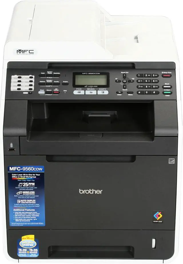 The MFC-9560cdw color laser all-in-one combines print, copy, scan and fax in one powerful device. It produces high-impact color output at impressive print and copy speeds of up to 25ppm and offers flexible connectivity with its Wireless, Ethernet and USB interfaces. This all-in-one features automatic duplex print/copy/scan/fax and optional high yield toner cartridges are available to help lower your operating costs - making this all-in-one a smart choice for a business or workgroup. |