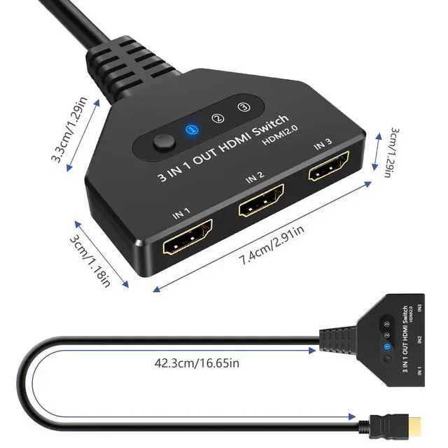 BUCIER HDMI Switch, HDMI Splitter 3 in 1 Out 4K@60Hz, 3-Port Switcher Selector with Pigtail Cable, Multi-Port Hub Supports 3D, HDCP2.2, HDR Compatible with Laptop, Xbox, Blu-Ray Player, Etc.