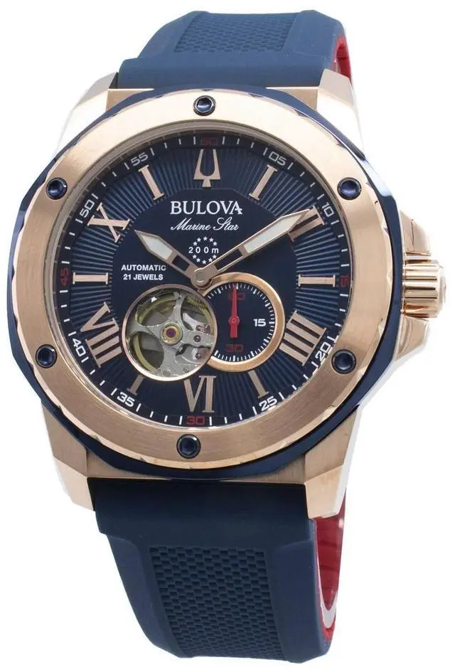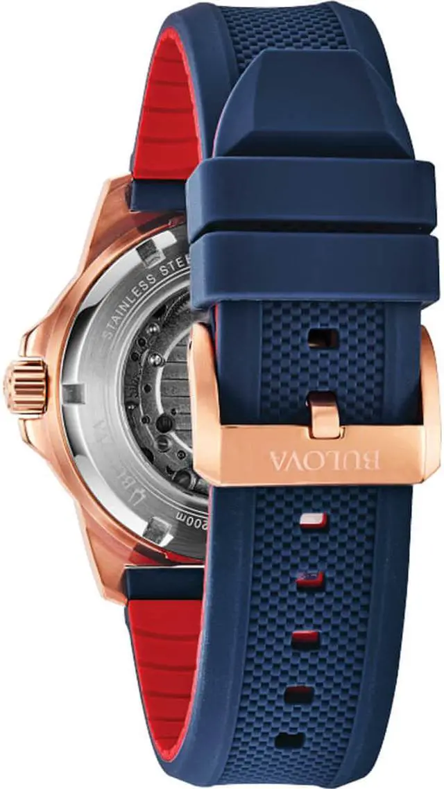 Bulova Marine Star Mens Rose Gold Plated Stainless Automatic Watch 98A227