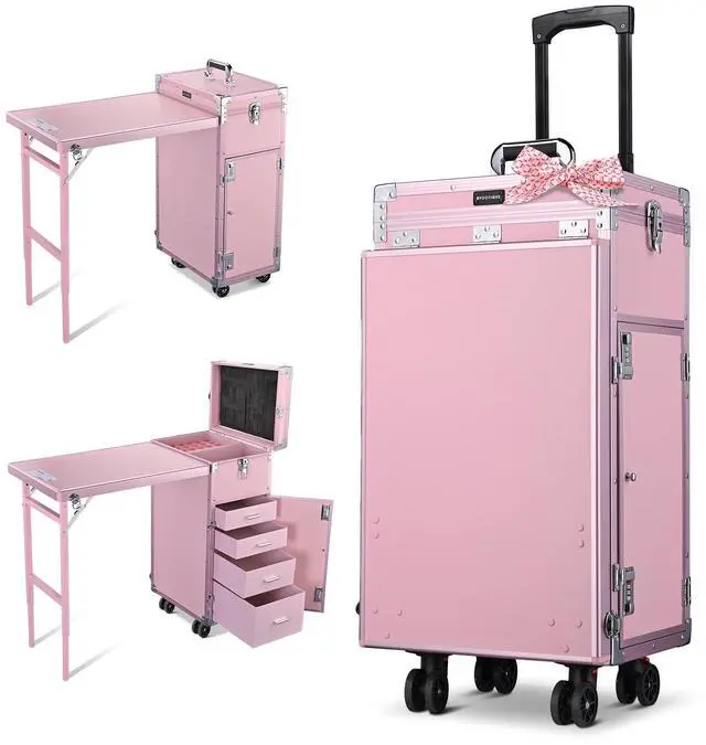 - Dual-Purpose - Features an expandable floor-standing table for dual purposes, serving as either a trolley case or a nail art workstation, along with foldable design allowing it to be folded into a one-piece trolley case with 360-degree swivel and detachable telescopic handle and wheels [detachable wheels]