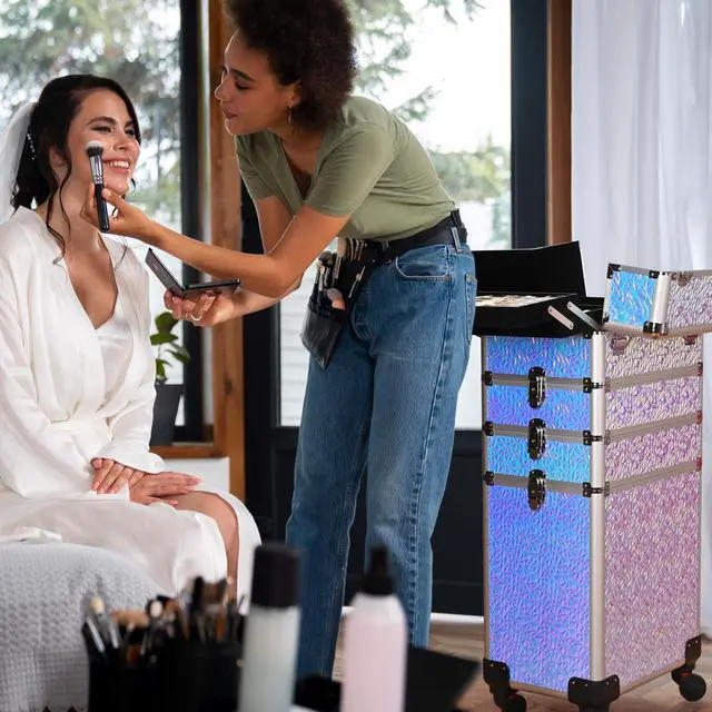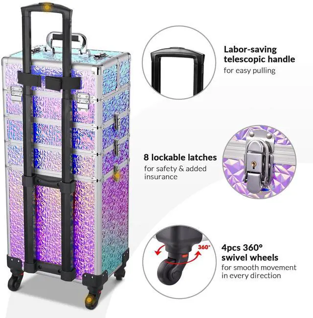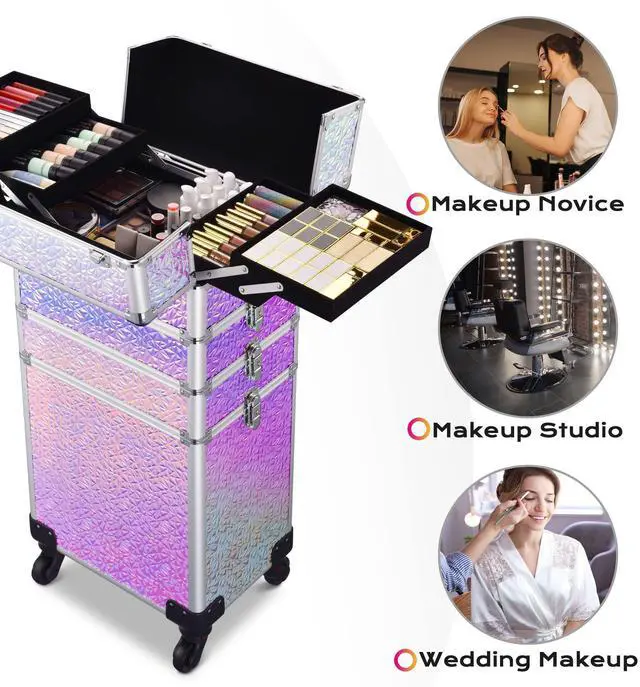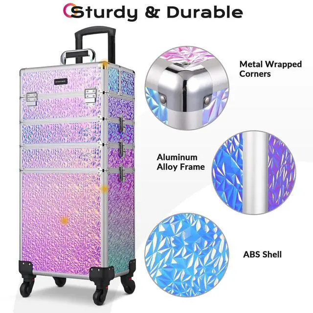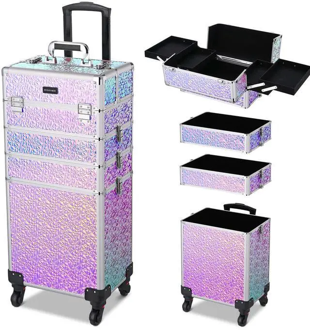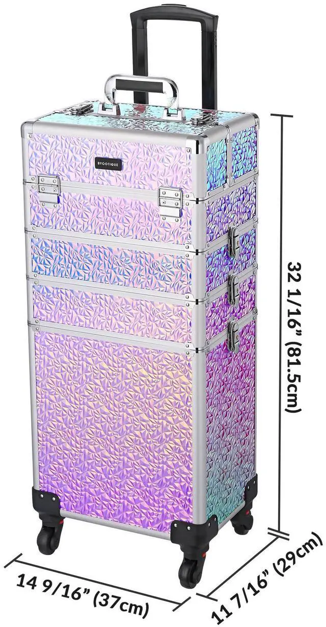 - Eye-catching Design - This Byootique 4-in-1 Makeup Train Case features a color gradient design for showing eye-catching purple-blue color, along with textured surface that changes the color when you view at different angles under light, delivering stylish & youthful style, suitable for beginner to professional makeup artists; Includes a detachable top case for using as an independent hand-carried case