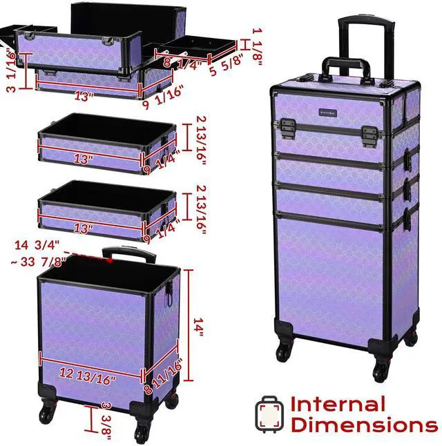 - 4-in-1 Customizable Structure - 4 sections allow free combination, can be combined into 1 large train case or used as a 2 to 4-layered trolley; The 2nd and 3rd sections for providing 2-layer space to store lipsticks, mascaras, palettes, etc.