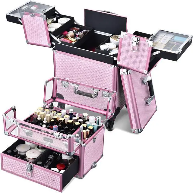 - Heat-Insulated & Convenient Design - Features a large side pocket with thick aluminum foil layer for heat isolation, ideal for storing lipsticks, eye shadows or blushers and preventing them from melting in hot summer weather; Comes with a transparent side slot for placing name tag or card, helping you find your makeup case quickly among other bags.
