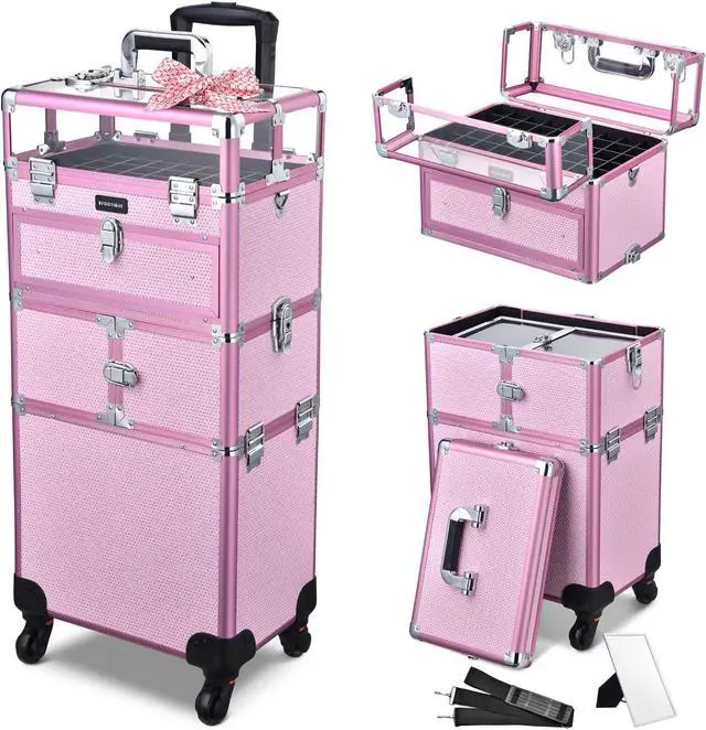 - Eye-catching & Portable - 15 3/16" x 8 11/16" x 15 3/4" Byootique Makeup Backpack features black surface with eye-catching pink liner for a stylish and unique look; Equipped with adjustable shoulder straps for easy carrying and a back strap for fixing the bag on the telescoping handle of train case, great for on-the-go makeup artists or bloggers who need to carry a lot of cosmetics
