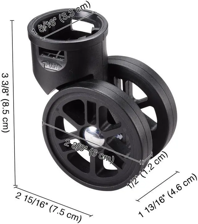 - Wheel Diameter: 2 3/8" (6 cm)