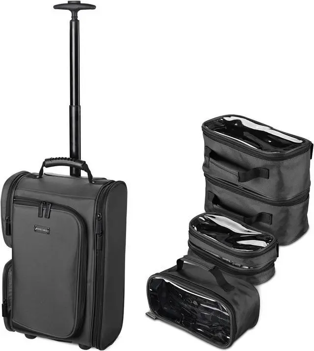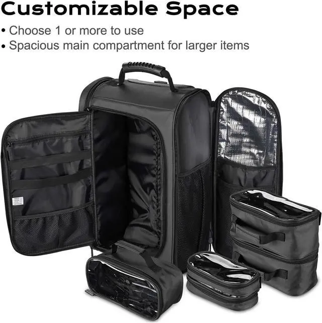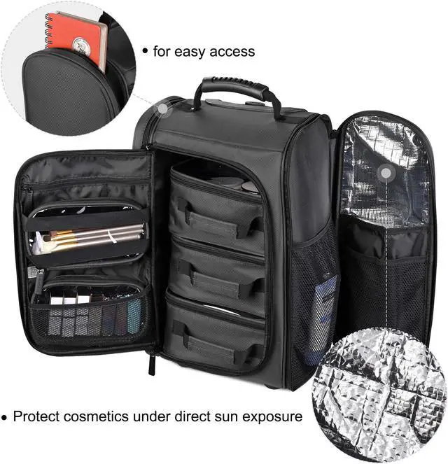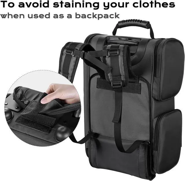 - Rolling & Shouldering Carry - Byootique Carry-on Makeup Case features dual-carry design, able to function as both a trolley case or a backpack, thanks to its pull-up handle and rolling wheels, along with its shoulder straps hidden on the back with zippered access, allowing flexible usage for on-the-go makeup artists, beauticians, hairdressers, etc.