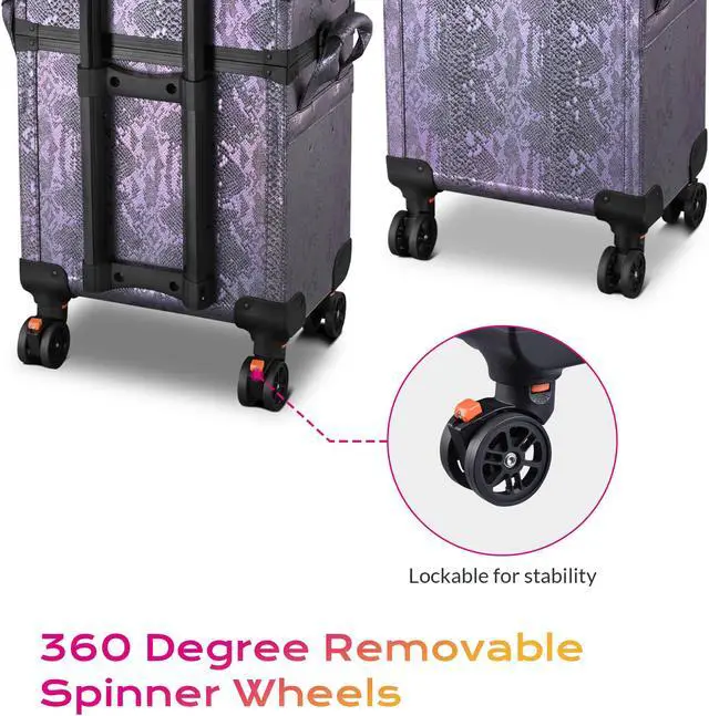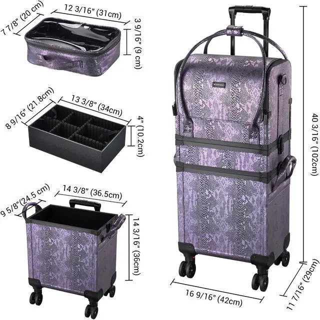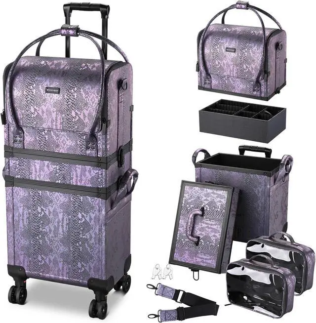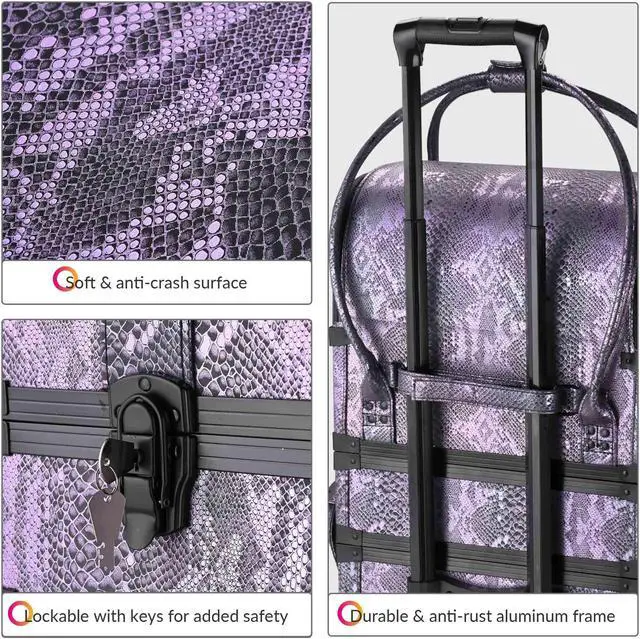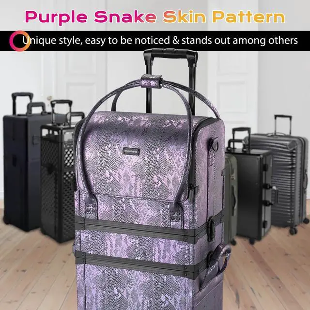 - Purple Snake Skin Pattern - Byootique Rolling Makeup Case in elegant purple color and snake skin pattern which becomes clearer when exposed to light, unique style suitable for introverted personality, also great for makeup artists, beauticians & hairstylists