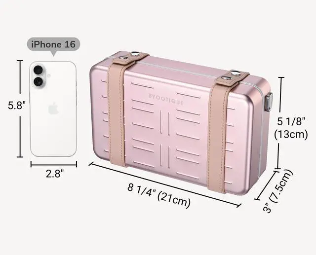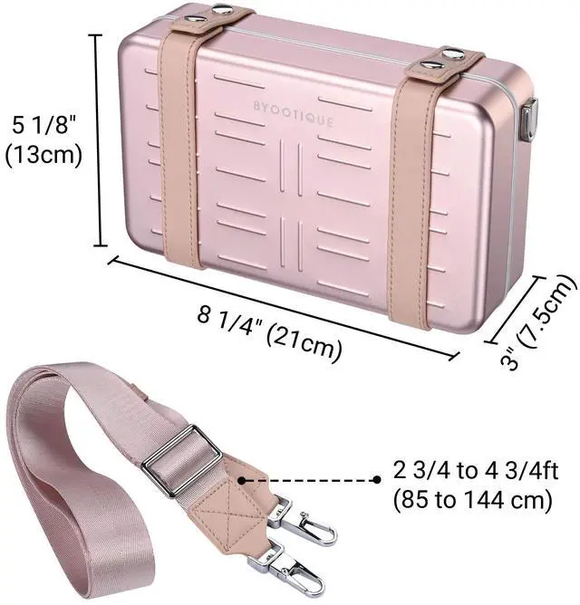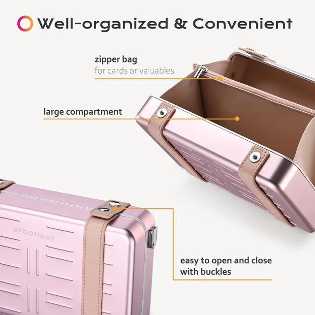 Byootique Mini Suitcase Crossbody Bag Portable Hard Shell Aluminum Cosmetic Makeup Case with Adjustable Strap Travel Handbag for Makeup Artist,Pink