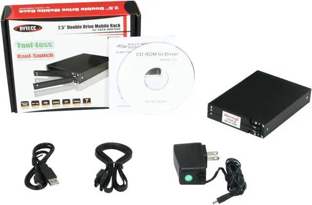 BYTECC BT-M251-BK 2 x 2.5" Black SATA I/II USB 2.0 & eSATA Drive Enclosure for SATA HDD/SSD, with RAID Switch