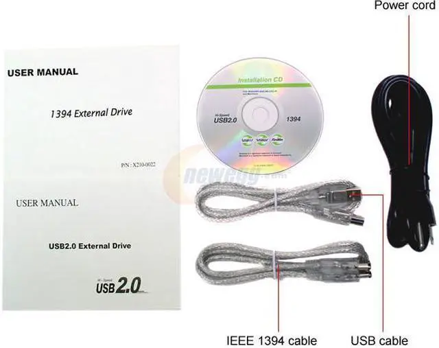 | Package Contents | 5.25" External Enclosure 3 feet A-male to B-male USB Cable 3 feet 6 pin to 6 pin Firewire Cable Power Cord Cable Driver Disk User Manual |